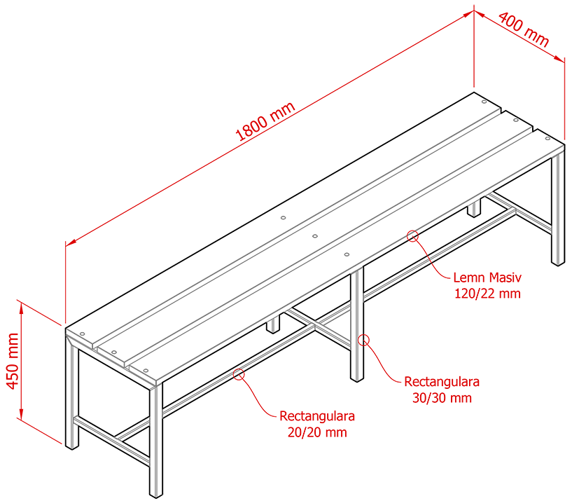 | Dimensiune banca | L 1800 mm x l 400 mm x H 450 mm |