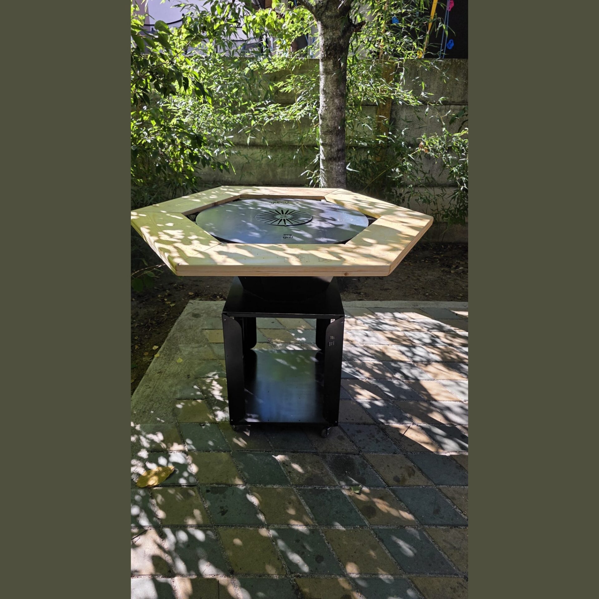 Grătar cu plită hexagonală sau octogonală și vatră de foc fara fum (smokeless) – 4 în 1
